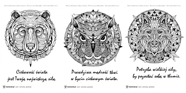 Po ankiecie i portretach przyjdzie czas na relaks 🙂 Każdy z moich kotków otrzyma mandalę motywacyjną do zeszytu (gdybyście chcieli je pobrać, są dostępne <tu>). Do przygotowanych przez <Martynę> grafik, dodałam kilka słów od siebie, oznaczyłam odpowiednimi hasztagami i gotowe. Tylko wklejać i kolorować.