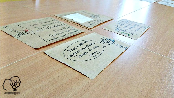 Na koniec zajęć zebrałam wszystkie wypełnione karty. Zerknę na nie i liczę, że wyniki okażą się dla wszystkich satysfakcjonujące (z całą pewnością wykorzystam elementy oceniania kształtującego, byśmy wszyscy mieli jasność dotyczącą stopnia opanowania wiedzy przez młodych ludzi, arkusz oceny znajdziecie